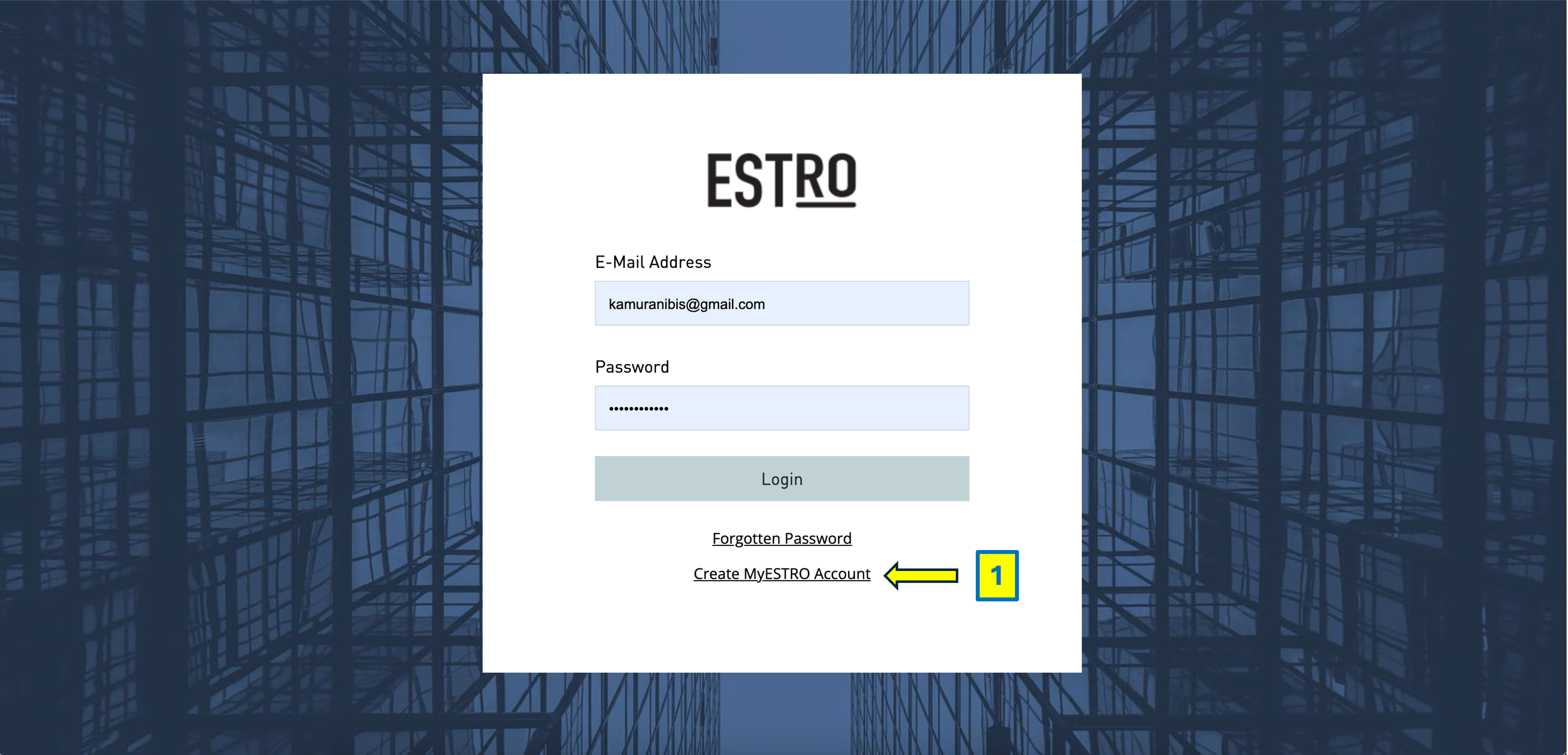 1-) Sağ üst köşede bulunan "MyESTRO" sekmesini tıklayın. MyESTRO hesabınızı oluşturun. Bu hesap, ücret ödenerek üye olunan ESTRO üyeliği değil. Ücretsizdir. ESTRO dernek üyesi olmak isterseniz Membership sekmesini tıklayıp devam etmeniz gerekir.