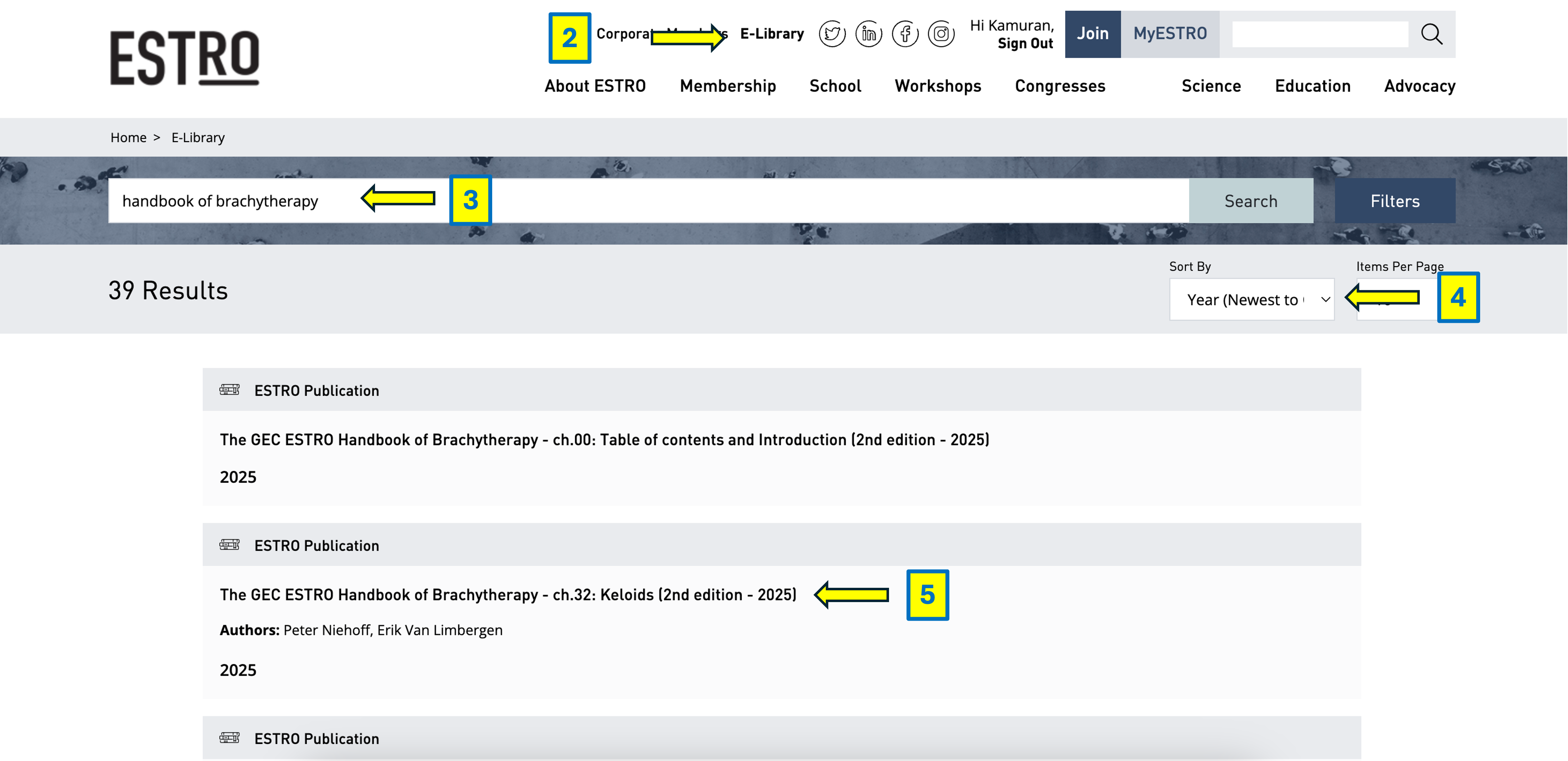 https://www.estro.org/ adresinden ESTRO sitesine girin.