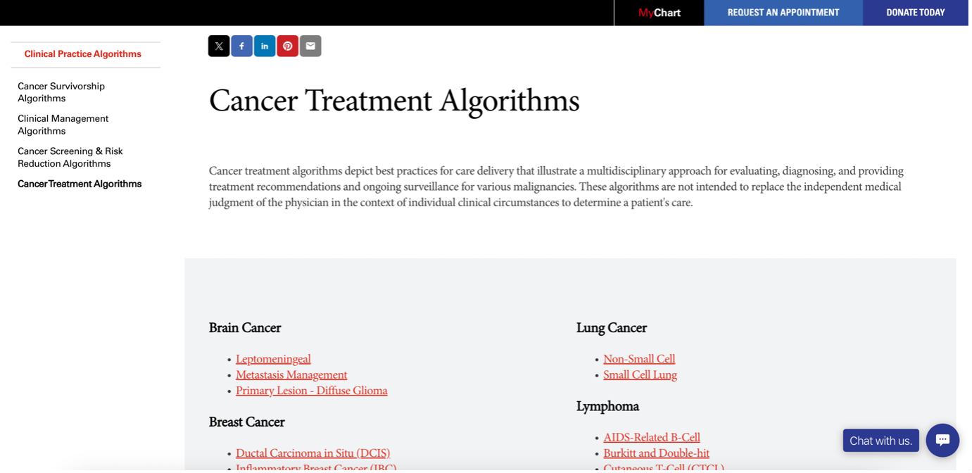 Birçoğumuz NCCN tedavi algoritmalarını takip ediyoruz. Ancak MD Anderson’ın çok sade ve farklı kanser türlerinin tedavisi için hazırladıkları algoritmaları oldukça pratik. İncelemeye değer.