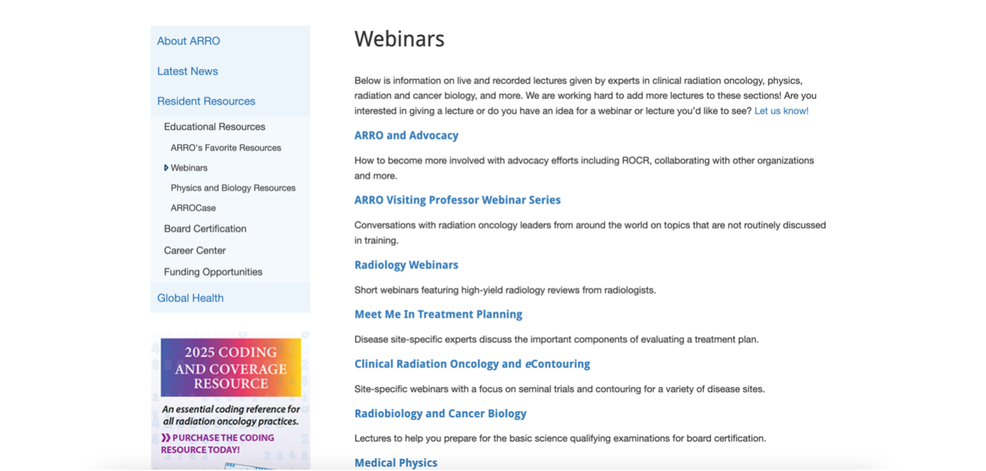 https://www.astro.org/interest-groups/arro/resident-resources/educational-resources